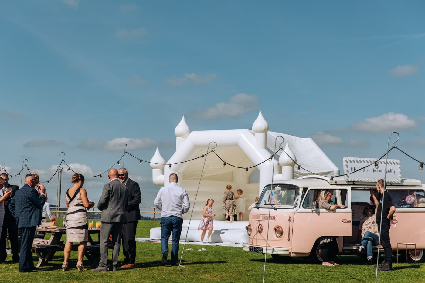 Then everybody enjoyed an elegant drinks and canapes reception on the lawn and terrace and we took our chance to capture some great images of the wedding party. There was a bouncy castle, and lawn games for the young, and not so young, and some guests wasted no time acquainting themselves with the fun birdie campervan photobooth (who doesn’t love a photobooth!)