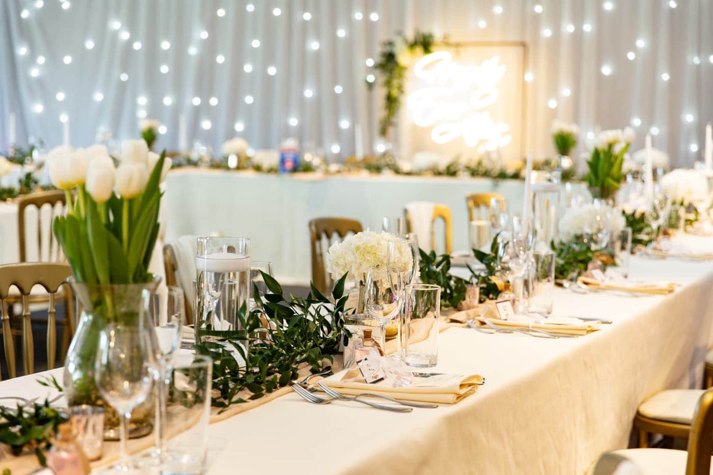 The evening celebrations were held in Heaton House Farm’s magical wedding barn, that had been dressed beautifully under a rainbow of coloured drapes and fairy lights. Things kicked off with Sam and Aaron enjoying a romantic first dance and these guys were definitely up for a party.