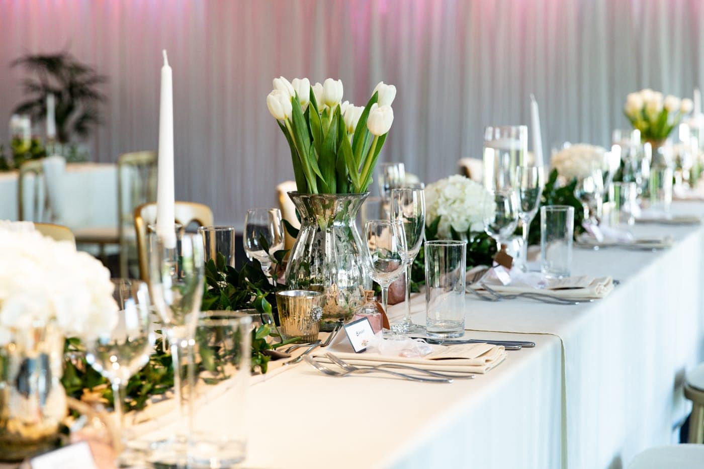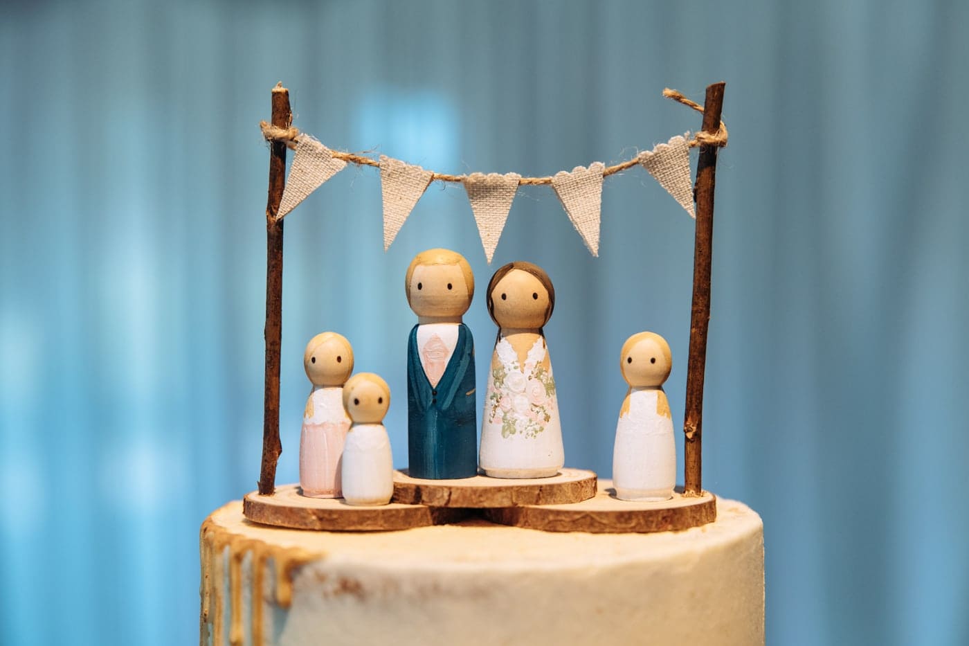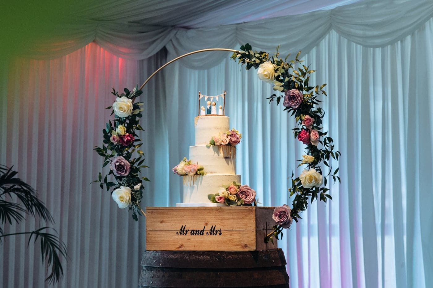 Now we must mention to the cake, it was stunning and the clever creation of the team at For Goodness Cakes. A naked three-tiered cake displayed in a floral hoop with five figurines on representing Sam, Aaron and their three gorgeous children.