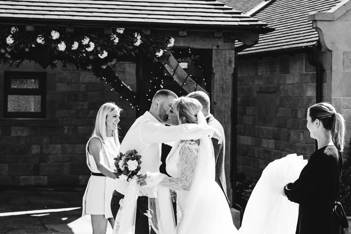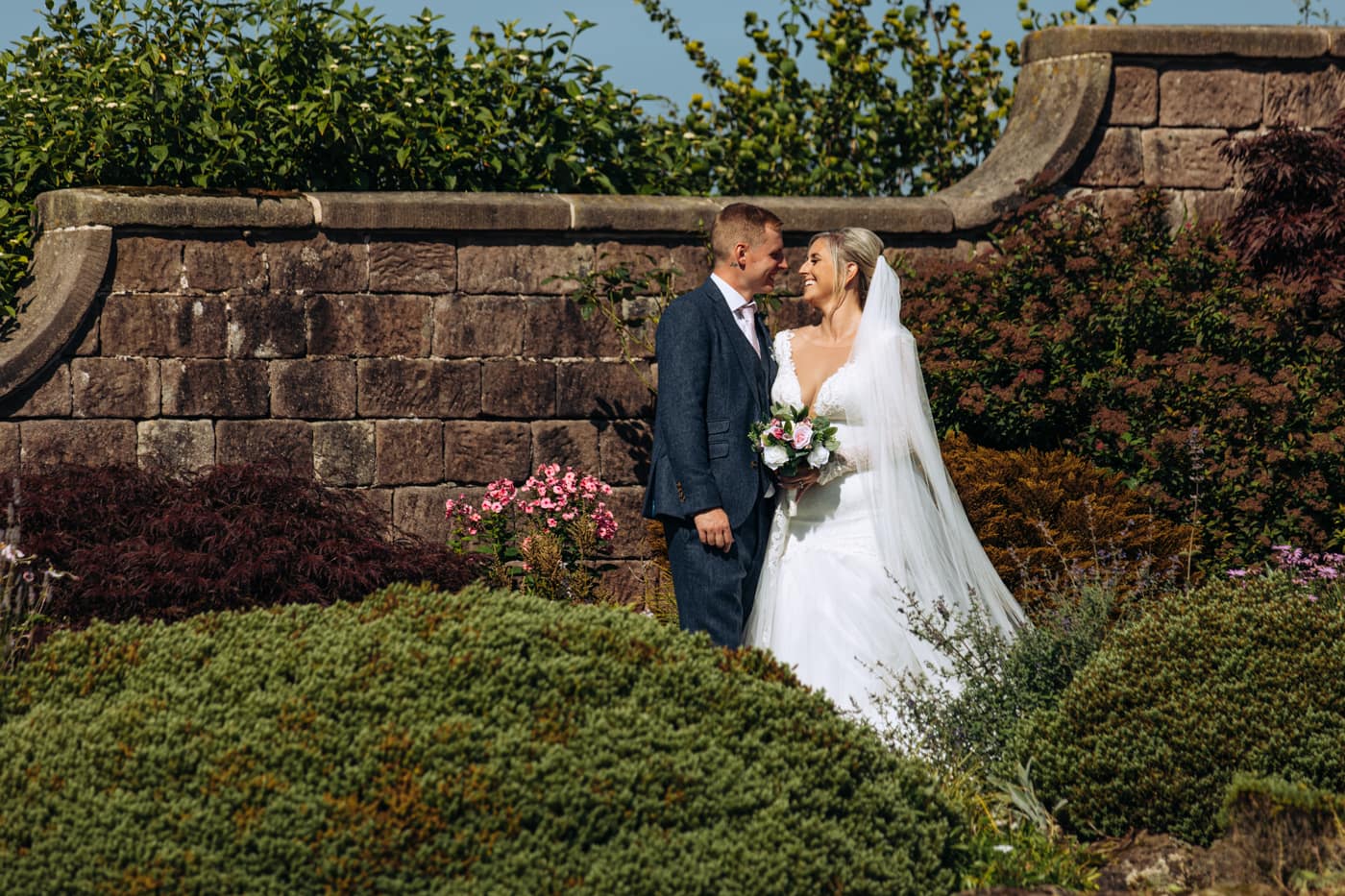 Whilst guests happily mingled, we quickly whisked Sam and Aaron away for a few minutes for a mini photoshoot around the beautiful gardens and grounds of Heaton House and we captured some really romantic portrait images. Here, take a look!