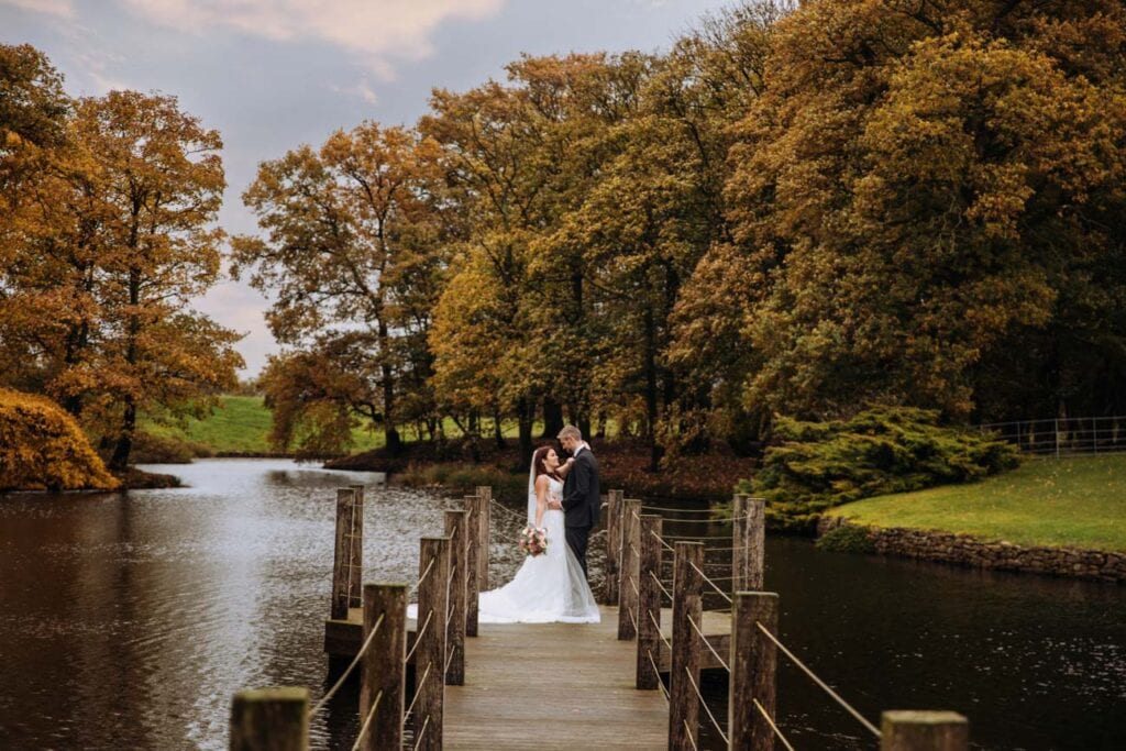 heaton house farm pond for bride and groom portraits